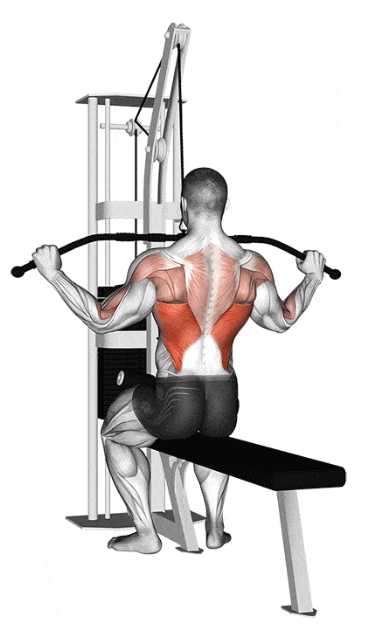 - 방법: 케이블 머신에 앉아 바를 넓게 잡고, 가슴 쪽으로 천천히 끌어당깁니다.