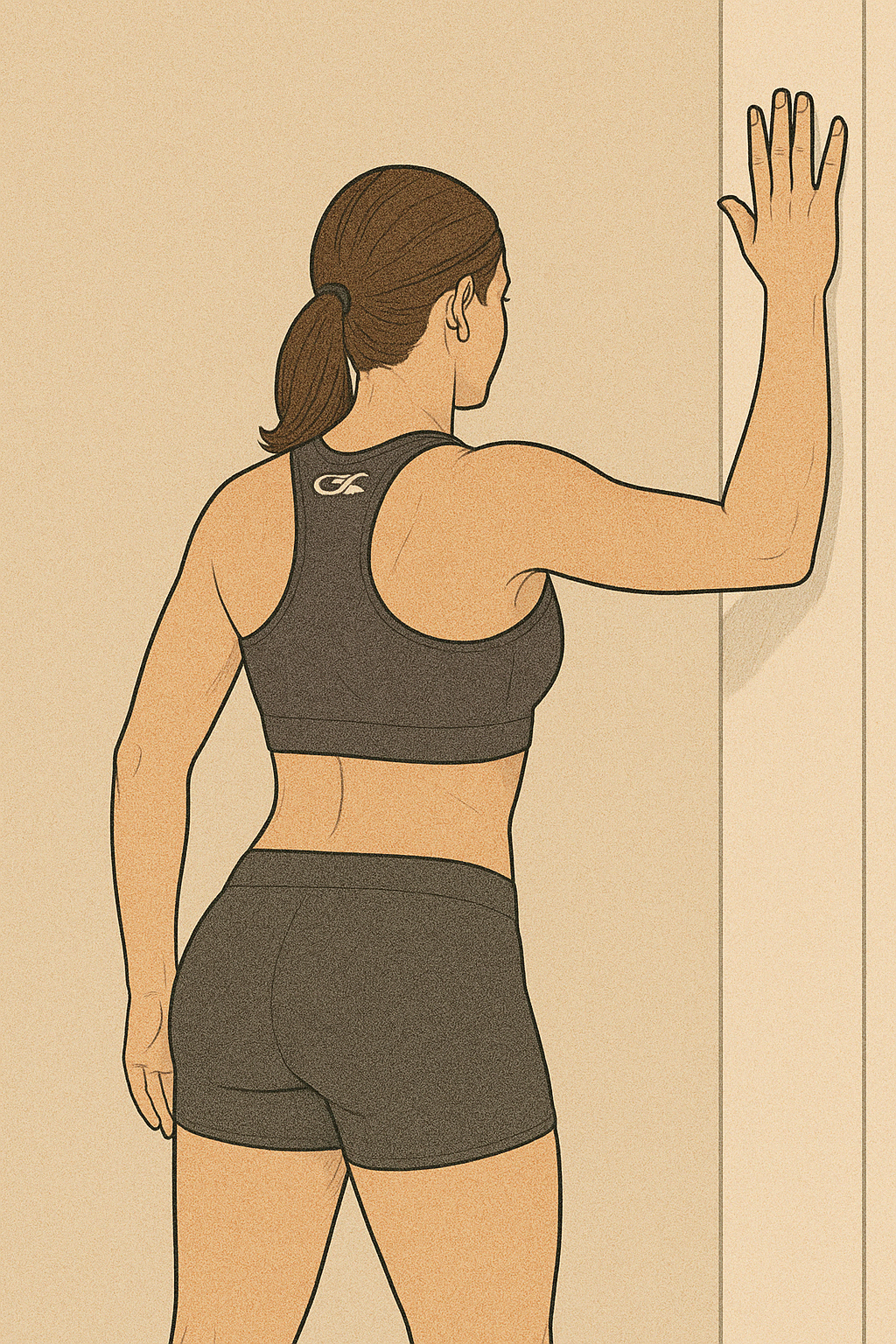 • 벽에 양손을 Y자 모양으로 붙이고 천천히 아래로 내림