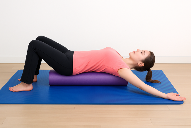 💪 루틴①: 폼롤러 위 가슴 열기 (T자 스트레칭)