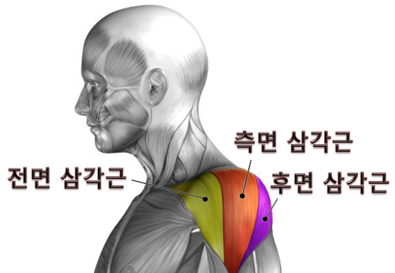 전면, 측면, 후면 어깨를 가리켜 삼각근이라고 해요!