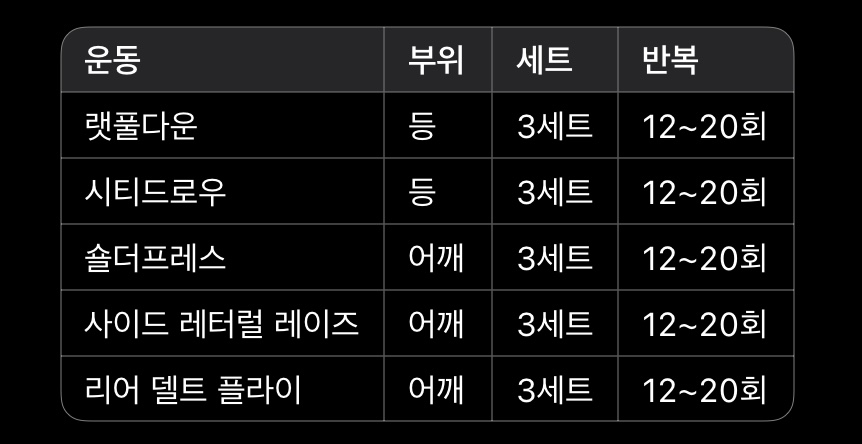 ✔️ 가능하면 등 운동 → 어깨 순서로 진행하는 걸 추천드려요\