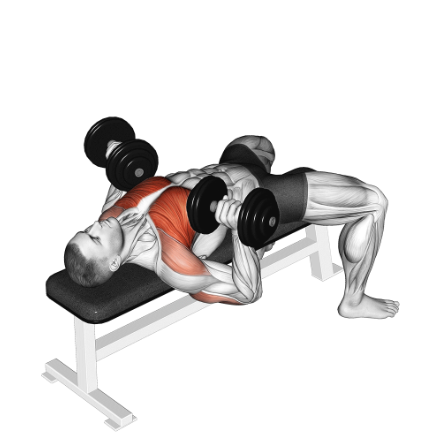 벤치에 누워서 덤벨을 들고 가슴 방향으로 밀어 올리는 운동입니다.