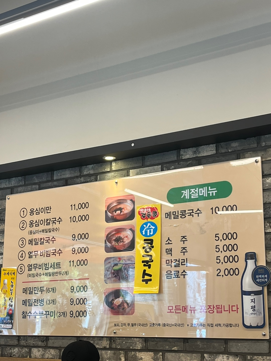 옹심이만, 옹심이칼국수, 열무 비빔국수를 시켰고