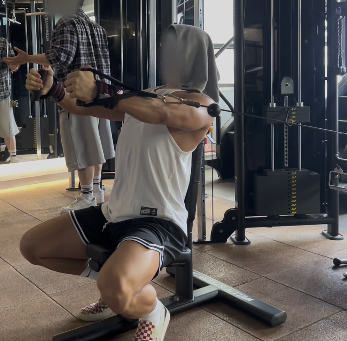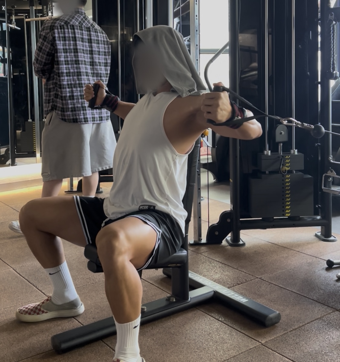 앉아서 하는 케이블 플라이는 가슴 상부를 세밀하게 공략할 수 있는 정말 좋은 운동입니다.